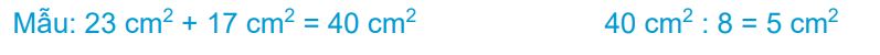 Thực hiện phép tính với các số rồi viết thêm đơn vị xăng-ti-mét vuông vào sau kết quả.