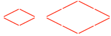 Dùng các que tính dài bằng nhau để xếp hình thoi.