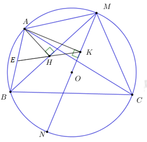 Hay bốn điểm \(A,H,\;K,\;M\) cùng nằm trên một đường tròn (đpcm).