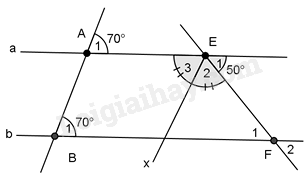 b) Vì a // b nên \(\widehat {{E_1}} = \widehat {{F_1}} = {50^0}\)(2 góc so le trong).