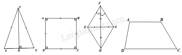 Hình có trục đối xứng là tam giác cân, hình vuông, hình thoi.