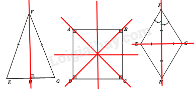 Hình có trục đối xứng là tam giác cân, hình vuông, hình thoi.