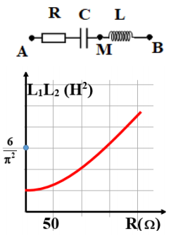 + Nhìn vào đồ thị ta thấy khi R = 100Ω thì \({L_1}{L_2} = \dfrac{4}{{{\pi ^2}}} \Rightarrow {Z_{L1}}{Z_{L2}} = \dfrac{4}{{{\pi ^2}}}.{\omega ^2} = 40000\) (3)