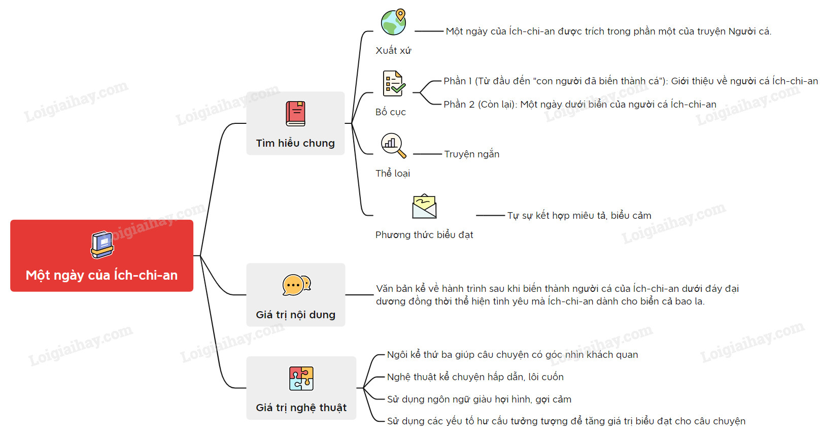Sơ đồ tư duy văn bản Một ngày của Ích-chi-an: