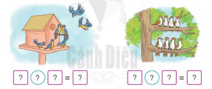 b) Xem tranh rồi nêu phép tính thích hợp:
