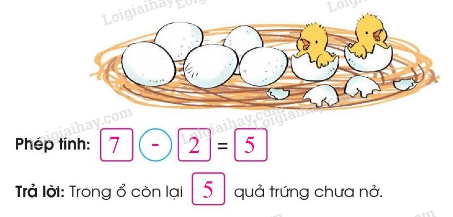 Ổ trứng có 7 quả, trong đó 2 quả đã nở. Hỏi trong ổ còn lại mấy quả trứng chưa nở?