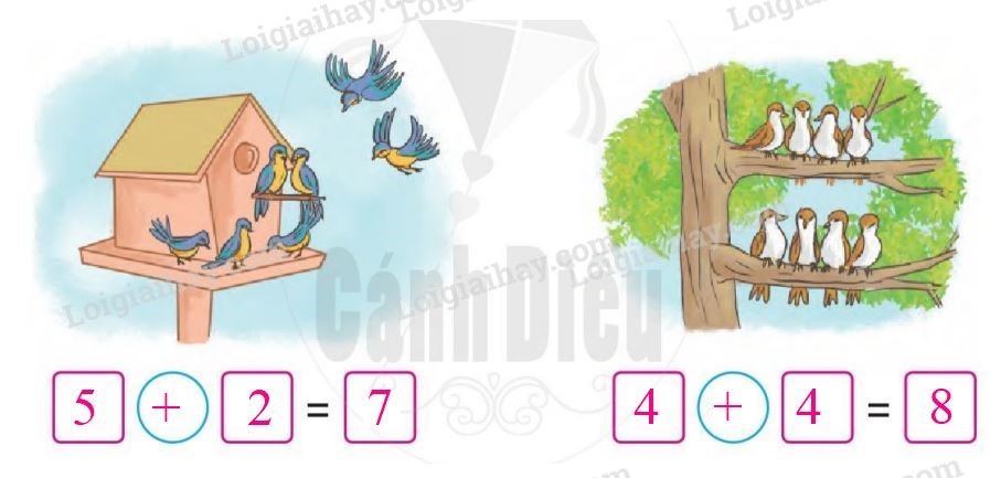 Quan sát hình, rồi nêu phép cộng tương ứng với hình.
