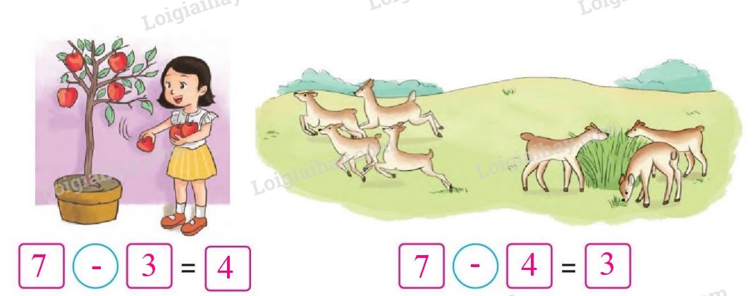 Quan sát hình, rồi nêu phép trừ tương ứng với hình.