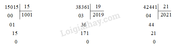 Đặt tính rồi tính 15015 : 15 38361 : 19 42441 : 21 Tìm x: Người ta xếp các chiếc bánh vào hộp, mỗi hộp xếp được 6 chiếc bánh. Hỏi có 100 chiếc bánh thì xếp được tất cả bao nhiêu hộp như thế và còn dư mấy chiếc bánh?