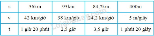 Vận tốc ở ô trống thứ tư là: