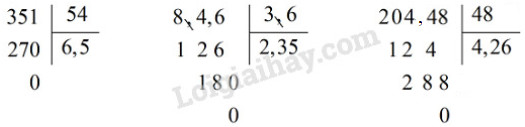 a) \(\displaystyle351 : 54\)                       \(\displaystyle8,46: 3,6\)                          \(\displaystyle204,48:48\)