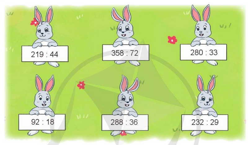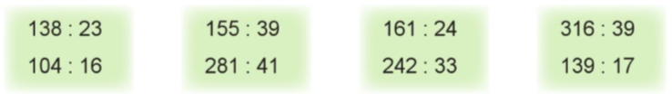 Vậy các phép tính có thương lớn hơn 5 là: 280 : 33; 288 : 36 và 232 : 29