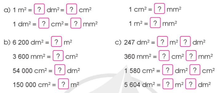 a) Đọc các số đo diện tích sau: 18 mm2, 603 mm2, 1 400 mm2