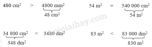 a) Em hãy tính diện tích hình chữ nhật đó theo đơn vị mi-li-mét vuông, xăng-ti-mét vuông.