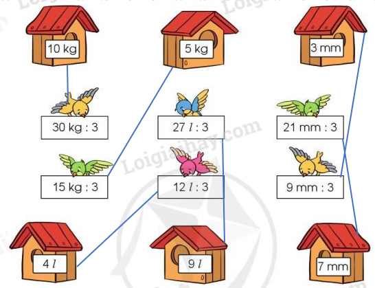 Thực hiện tính nhẩm dựa vào bảng chia 3 rồi nối mỗi phép tính với kết quả thích hợp.