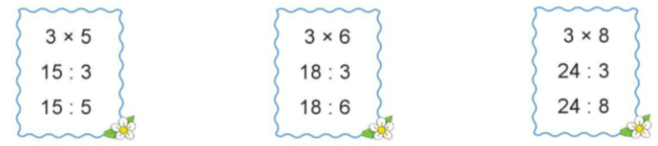 Mẹ Lan mua 24 bông hoa và cắm vào 3 chiếc lọ. Mỗi lọ có số bông hoa như nhau. Vậy mỗi lọ có 8 bông hoa.