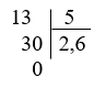 Cô giáo cho phép tính \(13:5\), bạn Hà đặt tính và thực hiện phép tính chia như sau.