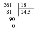 \(261:18 = 14,5\)
