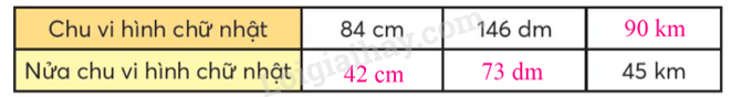 Nửa chu vi hình chữ nhật = Chu vi hình chữ nhật : 2