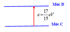\(\varepsilon  = {E_D} – {E_C} \\\to \dfrac{{17}}{{15}} = \left( {\dfrac{{ – 13,6}}{{n_D^2}} + \dfrac{{13,6}}{{n_C^2}}} \right)\\ \to \dfrac{1}{{n_C^2}} – \dfrac{1}{{n_D^2}} = \dfrac{1}{{13}} \\\to \dfrac{1}{{n_C^2}} > \dfrac{1}{{12}} \\\to {n_C} < 3,5\)
