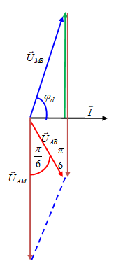 +  \(U_{AN}^2 = 3U_{MB}^2 \to U_L^2 + U_X^2\underbrace { – 2{U_L}{U_X}{\rm{cos}}\beta }_{ – c{\rm{os}}\beta  = c{\rm{os}}\alpha } = 3(\underbrace {U_C^2}_{U_L^2} + U_X^2 – 2\underbrace {{U_C}}_{{U_L}}{U_X}{\rm{cos}}\alpha {\rm{)}}\)