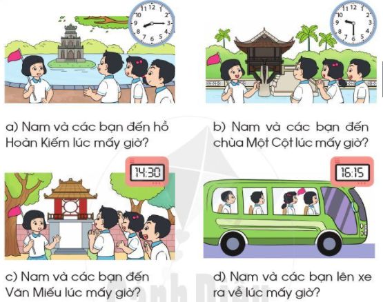 b) Nam và các bạn đến chùa Một Cột lúc 9 giờ 30 phút.