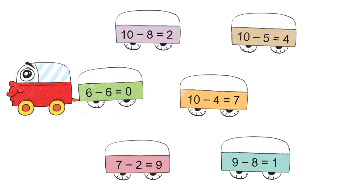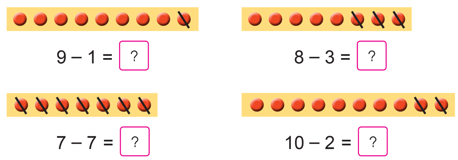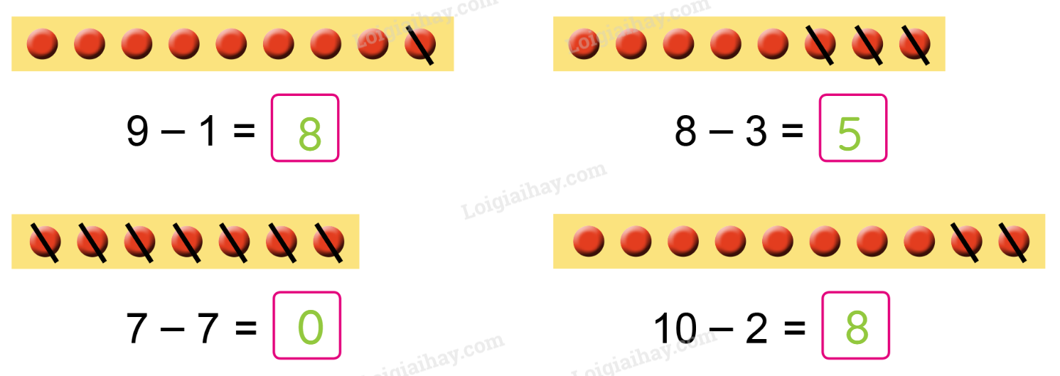 Quan sát hình, điền số thích hợp vào ô trống để được phép trừ đúng