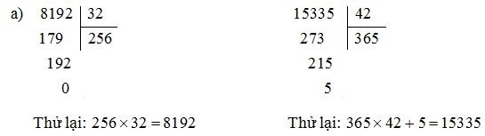 Chú ý: Phép chia hết: a : b = c, ta có a = c × b (b khác 0)