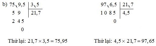 b) 75,95 : 3,5 ;                        97,65 : 21,7 (thương là số thập phân)