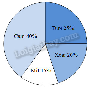 Biểu đồ dưới đây cho biết kết quả khảo sát ý thích ăn một số loại quả (cam, dứa, mít, xoài) của 120 học sinh khối lớp 5: