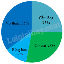 c) Câu lạc bộ có số bạn tham gia nhiều nhất là võ thuật (chiếm 35%).
