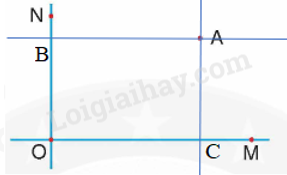 a) Vẽ đường thẳng AB đi qua điểm A và vuông góc với đường thẳng ON ta được đường thẳng AB song song với đường thẳng OM