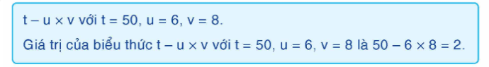 Thay chữ bằng số vào biểu thức rồi tính giá trị của biểu thức đó.