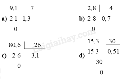 – Tiếp tục chia với từng chữ số ở phần thập phân của số bị chia.