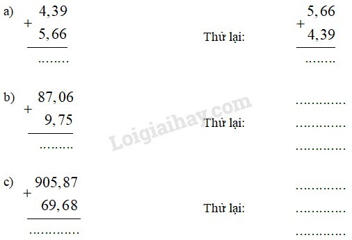 Phép cộng các số thập phân có tính chất giao hoán: Khi đổi chỗ hai số hạng trong một tổng thì  ……………………………………..