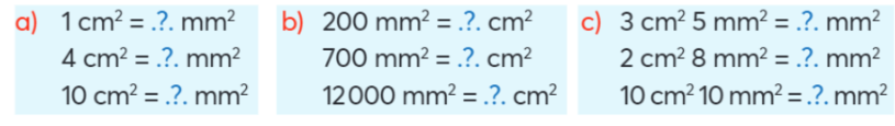 – Áp dụng cách đổi: 1 cm2 = 100 mm2