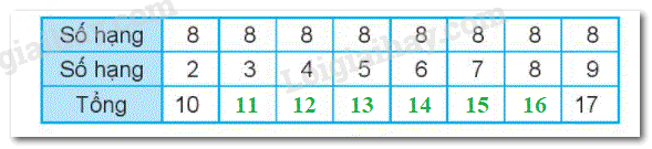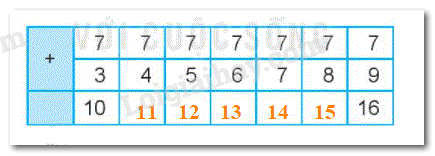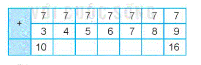 Em hãy tính nhẩm kết quả các phép cộng trong bảng rồi điền vào ô trống.