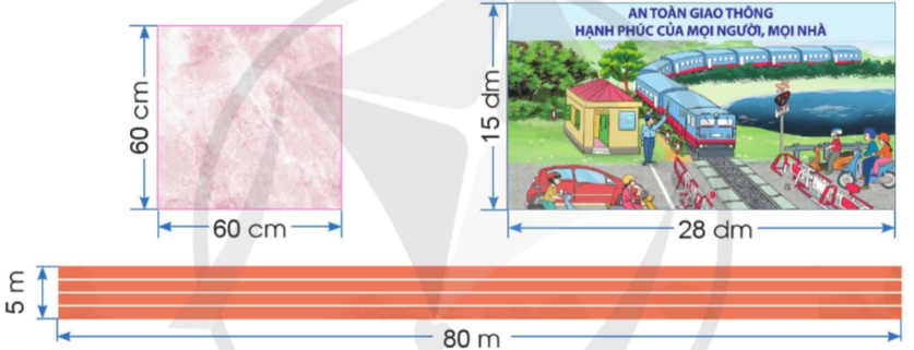 Tính diện tích viên gạch, tranh cổ động và đường chạy có kích thước như hình dưới đây: