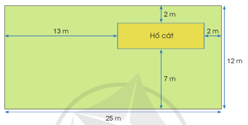 Người ta muốn đào một hố cát dạng hình chữ nhật trong một sân cỏ hình chữ nhật với kích thước như sơ đồ dưới đây: