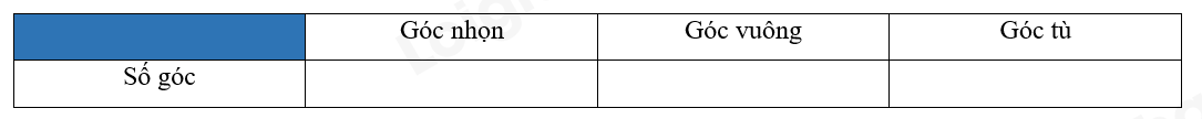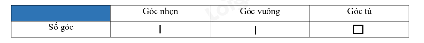 b) Em hãy hoàn thành bảng ghi lại số góc mỗi loại tìm được ở câu a bằng các gạch, mỗi gạch là một góc.