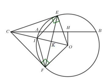 C là giao điểm của 2 tiếp tuyến CE và CF của \(\left( O \right)\)