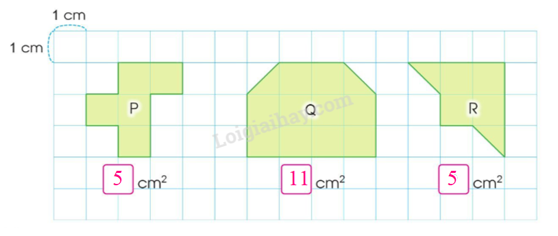 Diện tích của mỗi hình bằng số ô vuông đếm được.