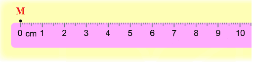 – Bước 2: Đặt thước để vạch số 0 của thước trùng với điểm M vừa chấm.