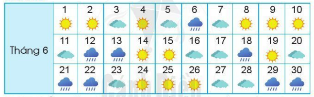 Một người theo dõi thời tiết đã ghi lại thời tiết trong tháng 6 như sau:
