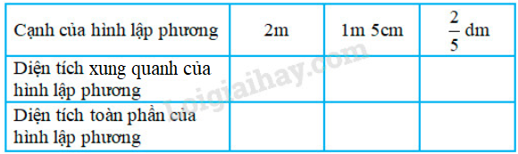 Diện tích toàn phần = diện tích một mặt \(\times \) 6 = cạnh \(\times \) cạnh \(\times \) 6.