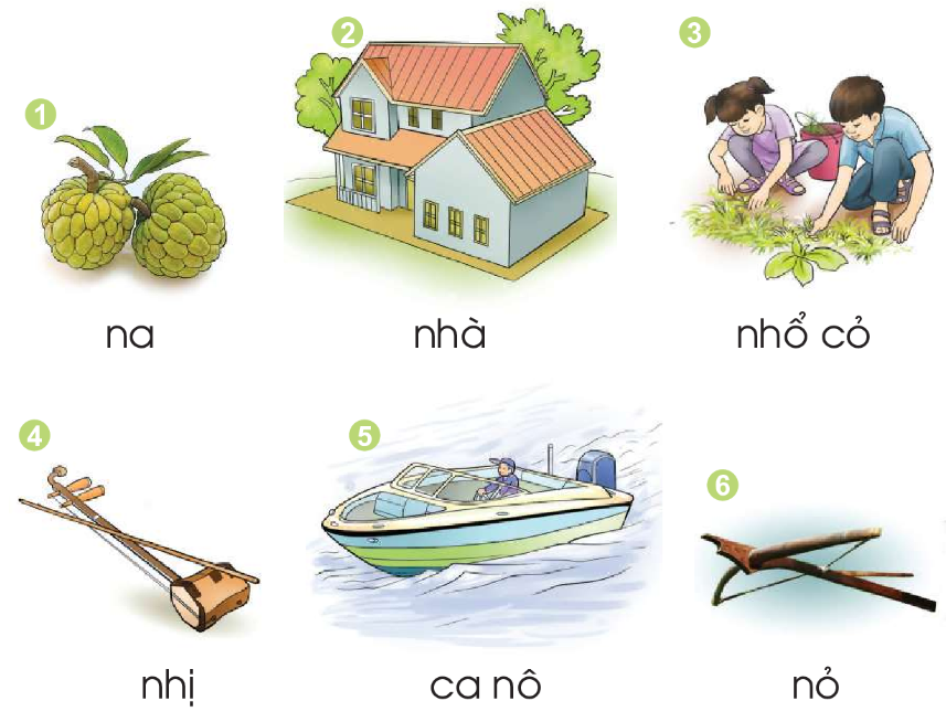 Các tiếng có âm n là: hình 1, 5, 6