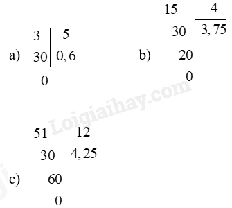– Viết thêm vào bên phải số dư một chữ số 0 rồi chia tiếp.