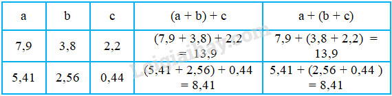 Phép cộng các số thập phân có tính chất kết hợp : Khi cộng một tổng hai số với số thứ ba, ta có thể cộng số thứ nhất với tổng của hai số còn lại.