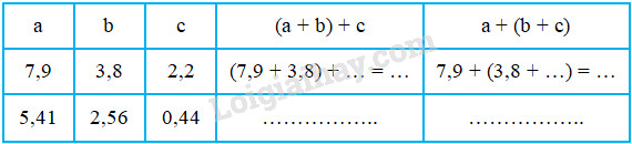 Phép cộng các số thập phân có tính chất kết hợp : Khi cộng một tổng hai số với số thứ ba, ta có thể cộng số thứ nhất với tổng của hai số còn lại.
