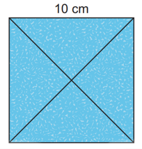 Một tấm bìa cứng hình vuông có cạnh 10 cm. Bạn An cắt ra thành 4 hình tam giác nhỏ bằng nhau.